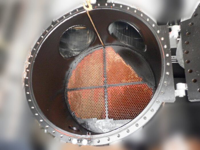 今回はタイプの異なるターボ冷凍機を清掃する様子をご紹介します。 塗装作業・ケレン作業の風景です。